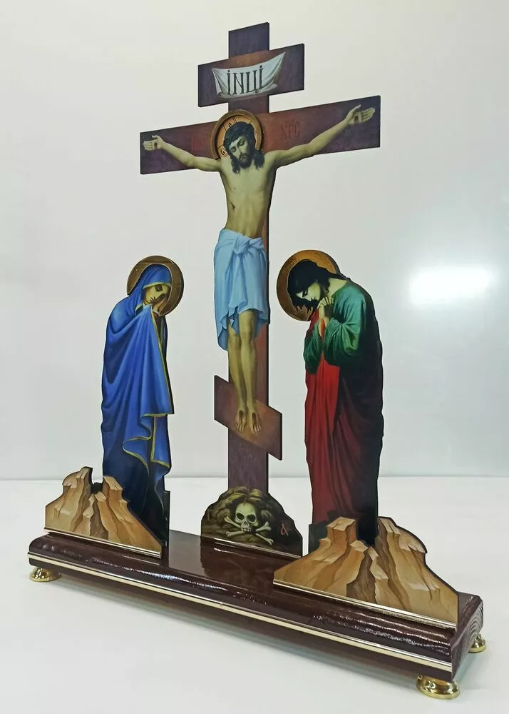Голгофа - символ розп'яття Ісуса Христа. Його зображують на багатьох іконах, а також в церквах встановлюють спеціальну атрибутику - голгофу. Ми виготовляємо Голгофи для храмів в повний зріст і Голгофи для жертовників.