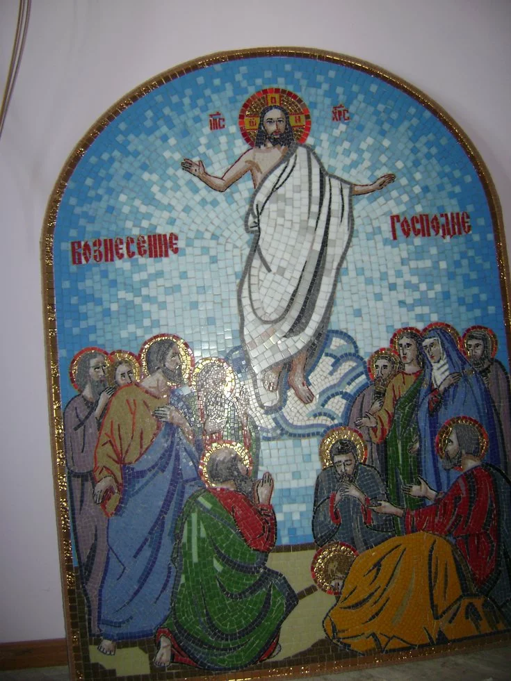Ікона Вознесіння з мозаїки стане прикраса будь-якого християнського храму. Майстерня Пономар займається виготовленням музичних ікон зі святими.