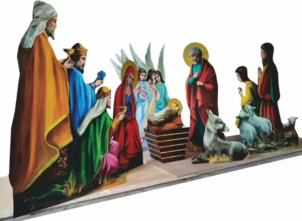 Наша майстерня займається виготовленням вертепів, виготовлених з ПВХ або алюмінію. Розміри можуть змінюватись в залежності від потрібних Вам габаритів. Вертеп розміром 1,50 м, в набір входить 7 шт фігур