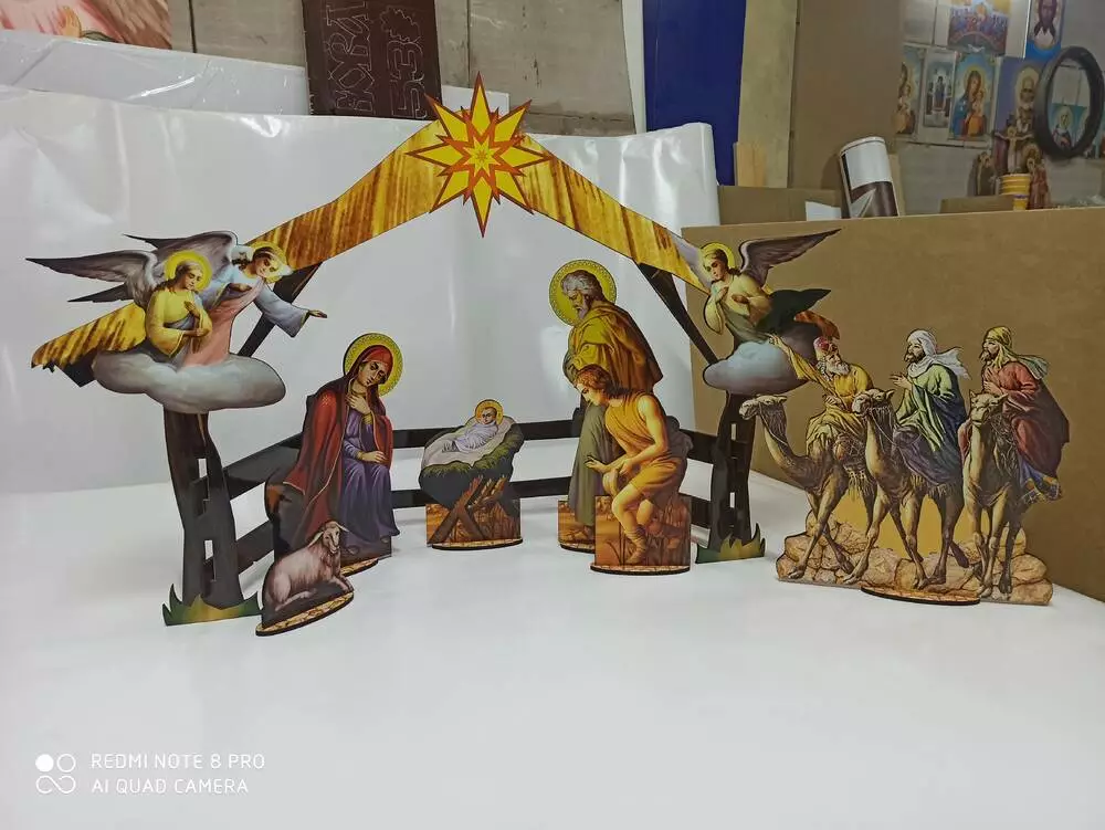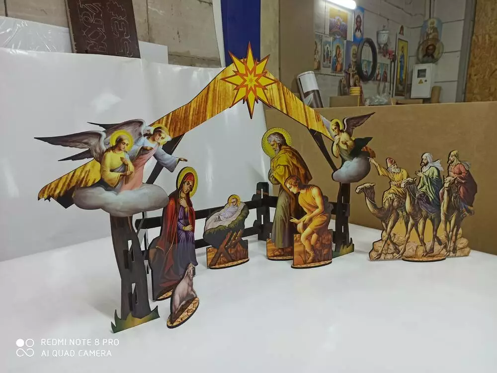 Вертеп розмір 95 см ширина, 60 висота см, розбірний, матеріал виготовлення мдф.
