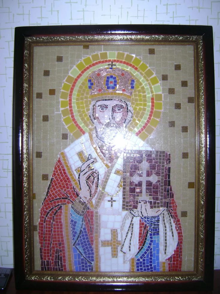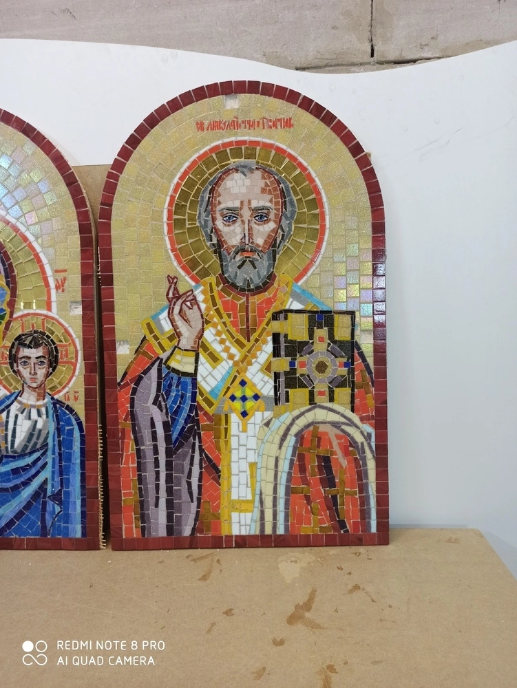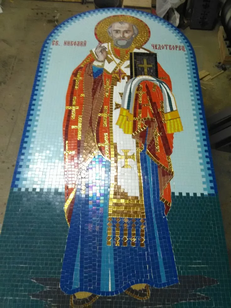 Икона Николай Чудотворец из мозаики - один из самых затребованных товаров нашей мастерской. Мозаичные иконы с изображением Святого Николая украшают храмы и церкви по всей Украине.