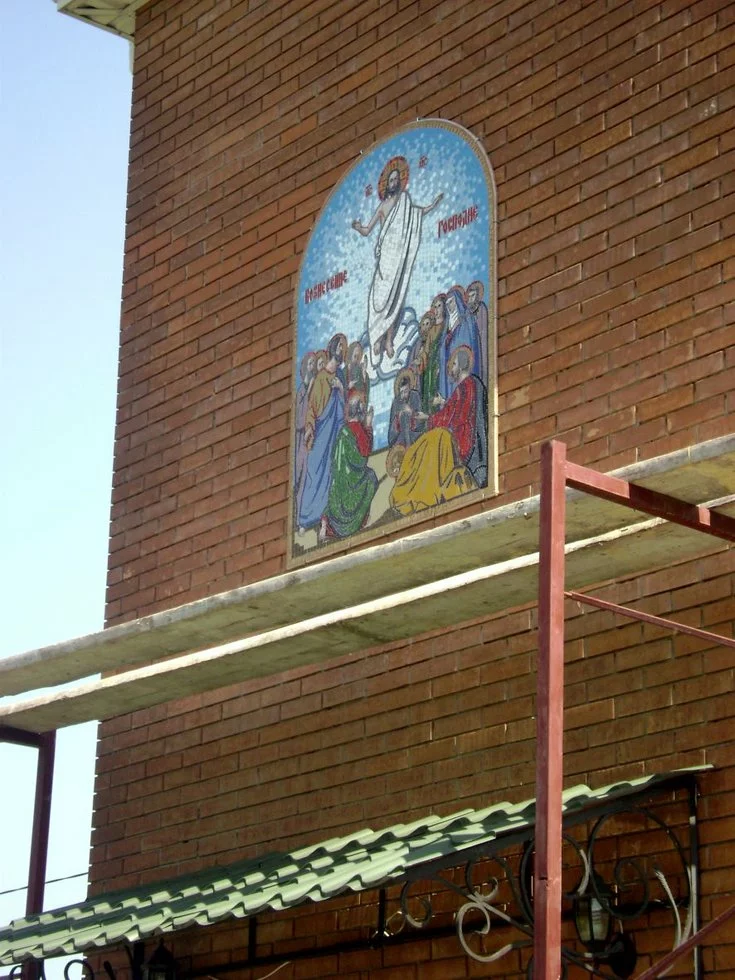 Иконы из мозаики пользуются широкой популярностью - ими украшают врата церквей, фасады храмов, а также мозаикой украшают внутренние стены.