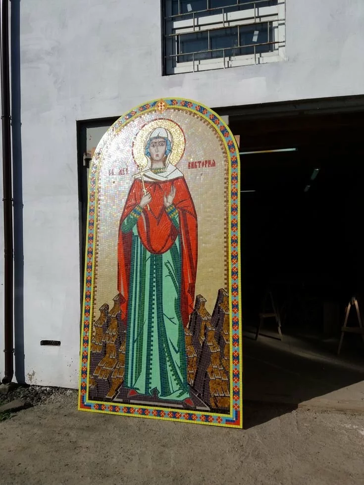 Мастерская Пономарь принимает заказы на изготовление мозаичных икон с ликами святых любых размеров.