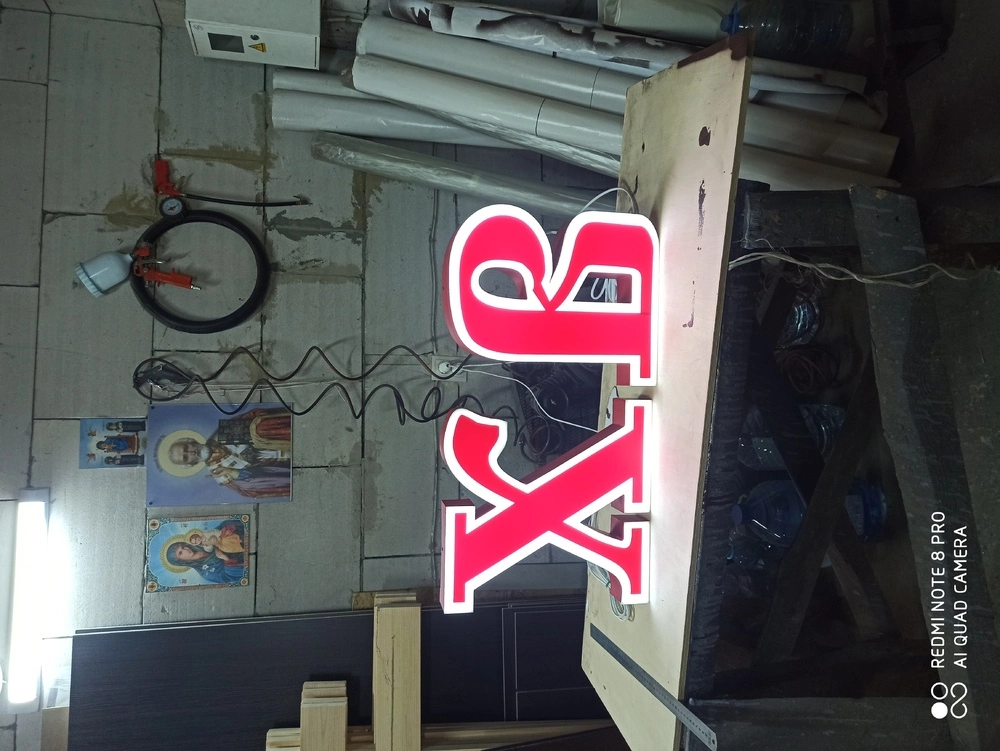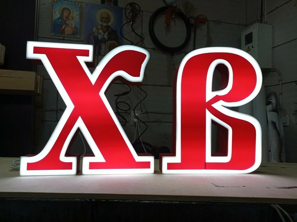Мастерская "Панамарь" производит светловые вывески для оформления иконостаса.