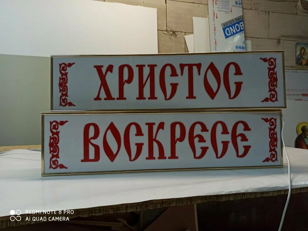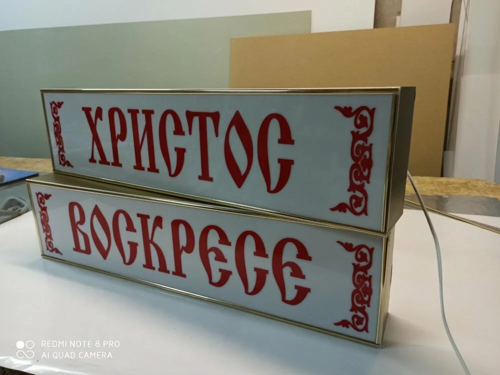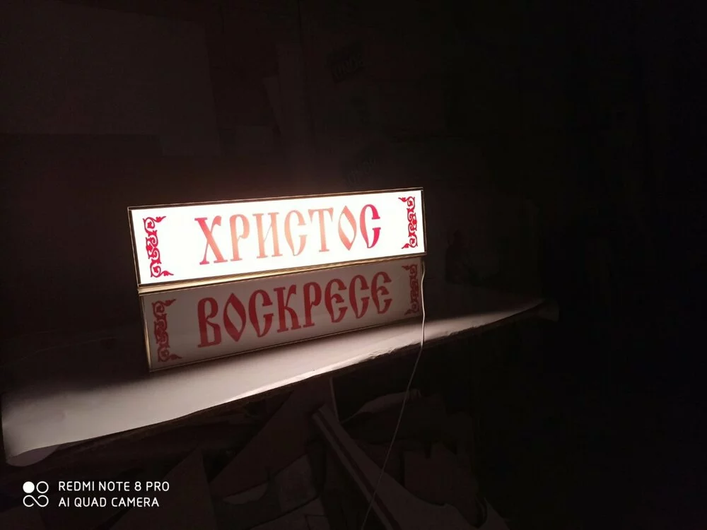 Мастерская "Панамарь" производит светловые надписи для оформления иконостаса.