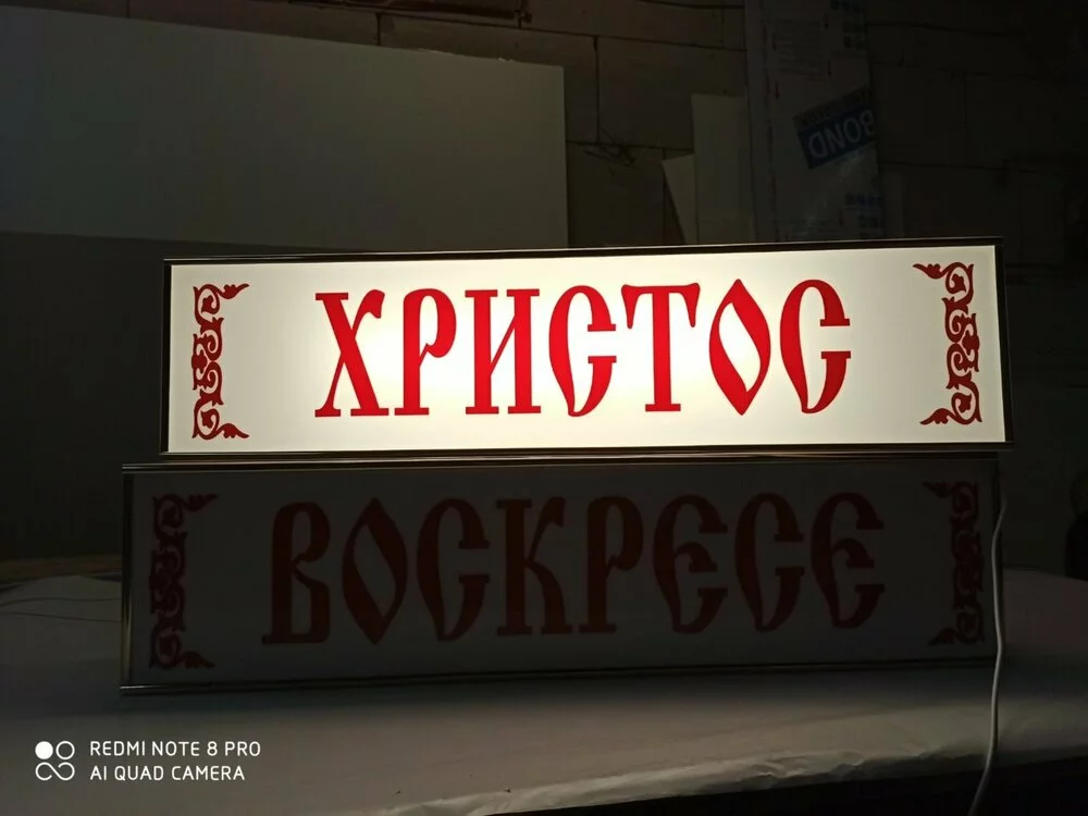 Мастерская "Панамарь" производит светловые вывески для оформления иконостаса.