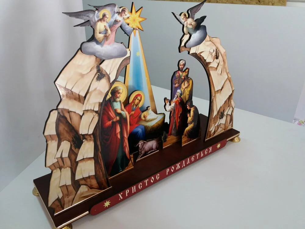 Рождественский аналойный вертеп станет красивым украшения храма или церкви к большому празднику - Рождеству.